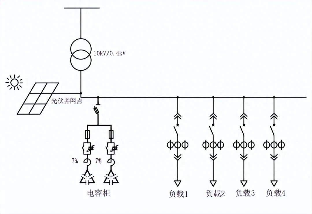 場(chǎng)景模擬(假設(shè)使用電容器固定分組補(bǔ)償):