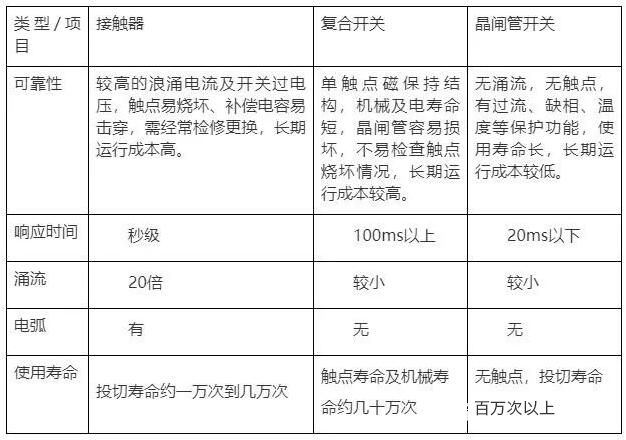 現在市場上的三種電容器投切開關,交流接觸器、晶閘管開關和復合開關。由于交流接觸器合閘涌流、投切速度慢,壽命短等問題,目前大家對采用晶閘管開關、復合開關替代交流接觸器已經形成了共識。但到底是選擇晶閘管開關還是復合開關呢?下面讓我們一起看一下晶閘管開關相比復合開關的優勢有哪些?