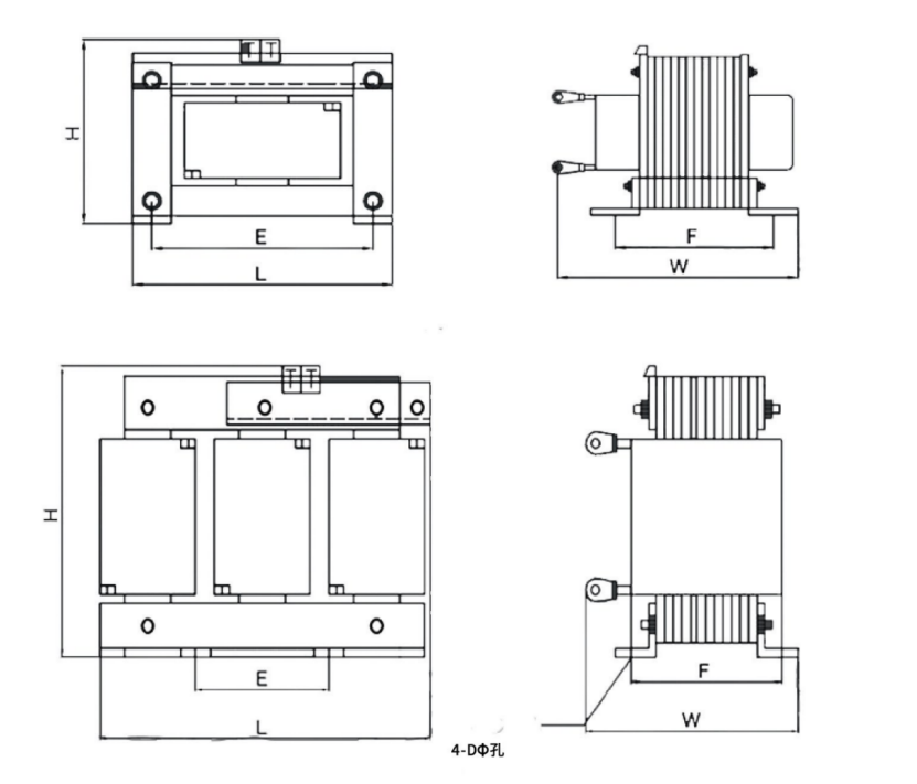 串聯(lián)電抗器用于220~2000V電力系統(tǒng)中,與并聯(lián)電容器組串聯(lián),調(diào)諧至某一諧振頻率,吸收電網(wǎng)中相應(yīng)頻率的諧波電流。電抗器為干式結(jié)構(gòu),采用優(yōu)質(zhì)硅鋼片、耐高溫漆包線繞制,優(yōu)質(zhì)樹(shù)脂繞注而成,具有過(guò)載能力強(qiáng)、損耗小、溫升低、噪音小等特點(diǎn)。