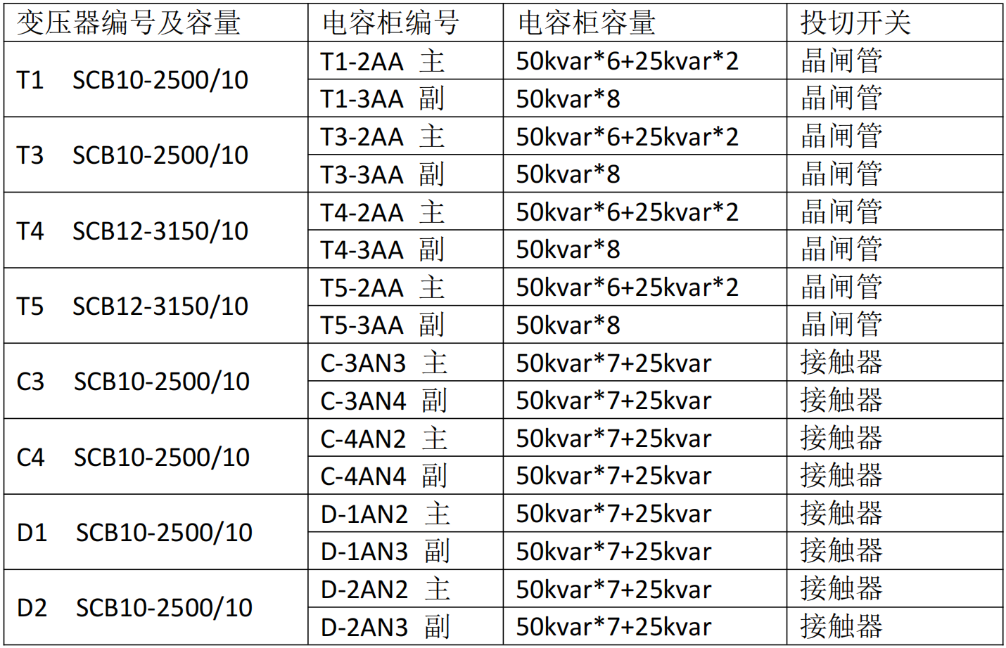 開關響應慢: C3、C4、D1、D2四臺變壓器下的電容柜采用接觸器投切開關,響應速度慢。面對光伏無功的頻繁快速波動,難以滿足高質量電能要求,易造成補償不及時或過補償。