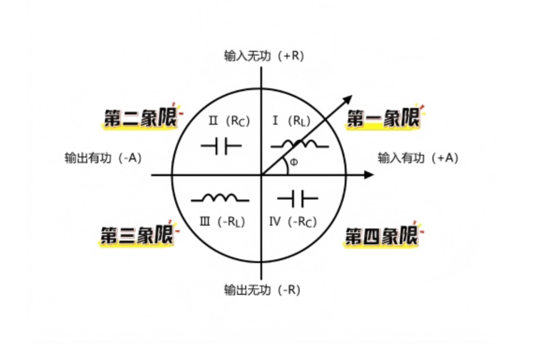 第四象限(+P, -Q):消耗有功功率,輸出容性無功功率。